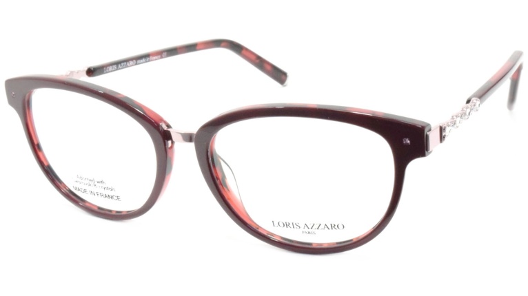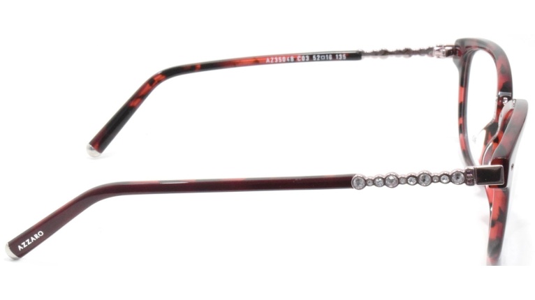 Azzaro je vrhunski proizvođač okvira iz Francuske gde se posvećuje apsolutna pažnja za svaki njihov okvir. Mačkasti par od izuzetnog kvaliteta koji je ukrašen sa Svarovski kristalima na drškama i interestantim detaljima na samom ramu.