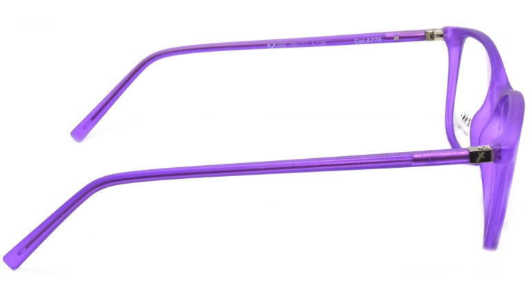 Vrlo izrazit okvir sa mat ljubičastom bojom i plastičnom građom koja se providi i posvetljuje na jakom svetlu. Drške su takođe od plastike što čini ovaj okvir vrlo laganim za nošnju, fleks mehanizam je dodat kao šlag na tortu. Boja: mat ljubičasta. Materijal: plastika.